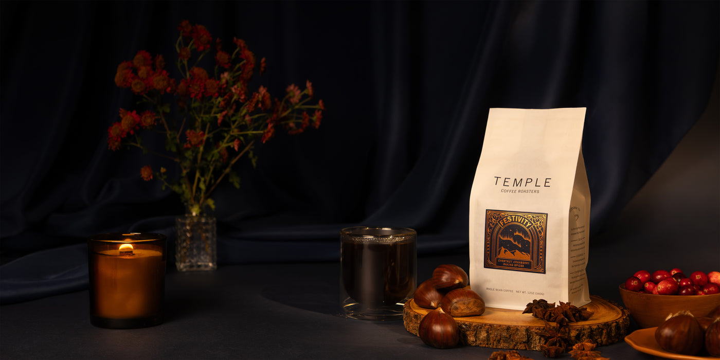 A seasonal blend with notes of baking spices, cranberry jam, and roasted chestnut.