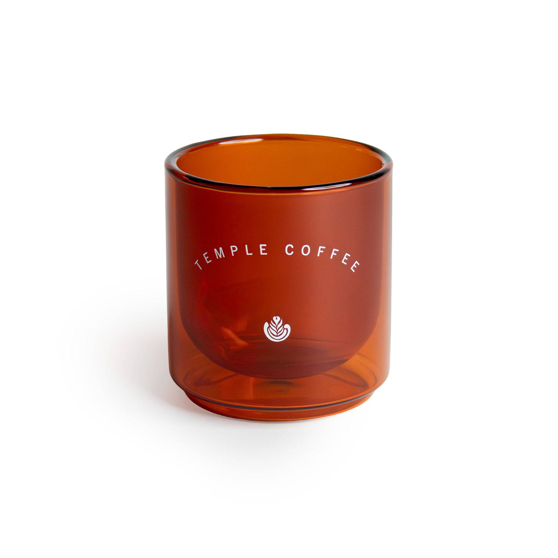 Amber glass coffee cup with &